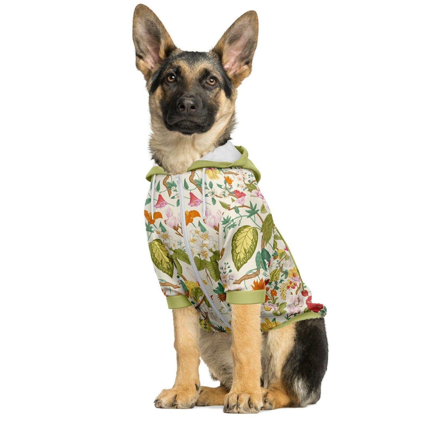 Vintage Floral Dog Fleece Zip-Up Hoodie