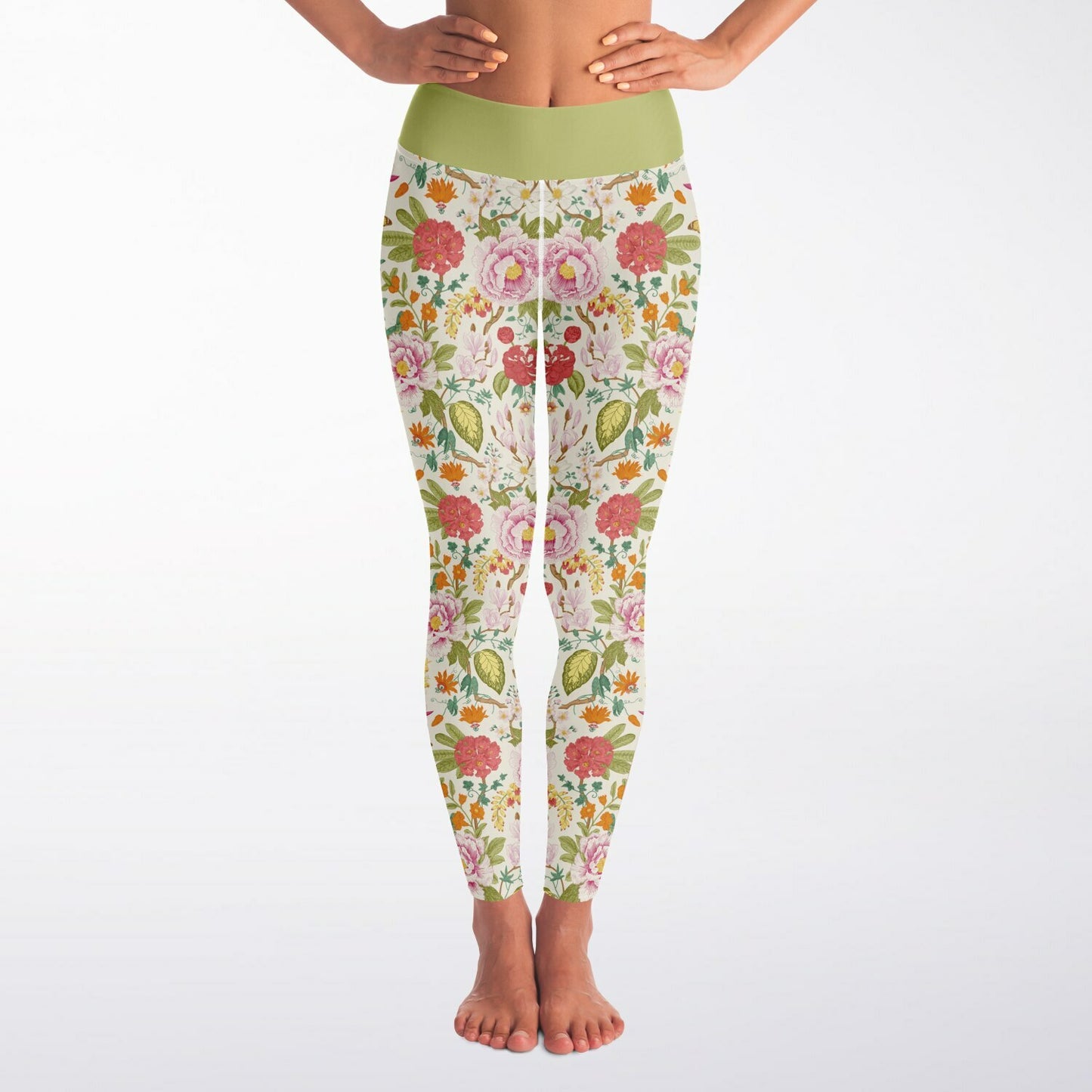 Vintage Floral Squat Proof Yoga Leggings - High-Waisted Workout & Gym Leggings