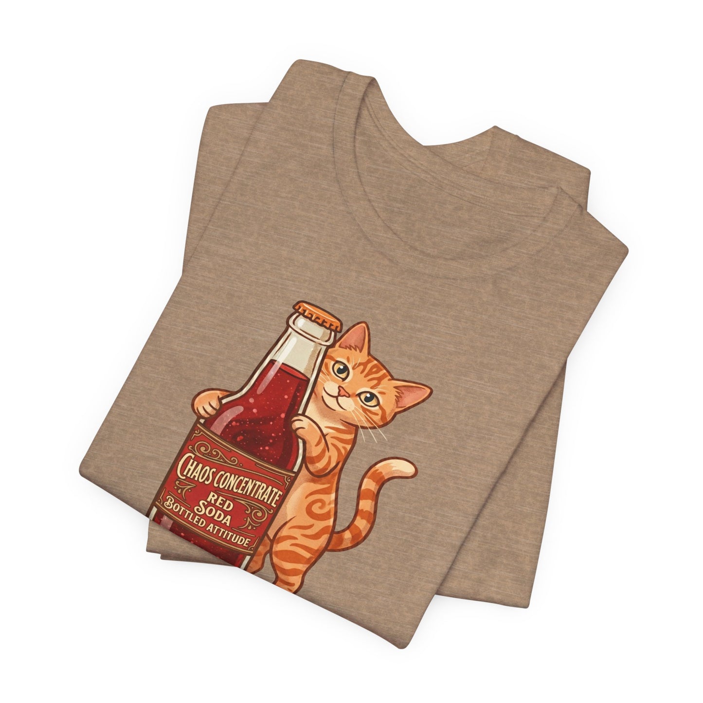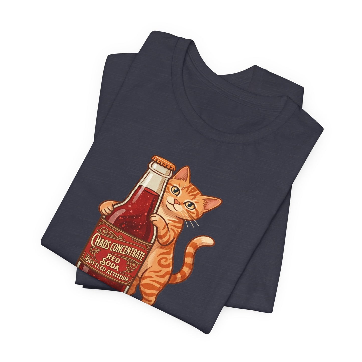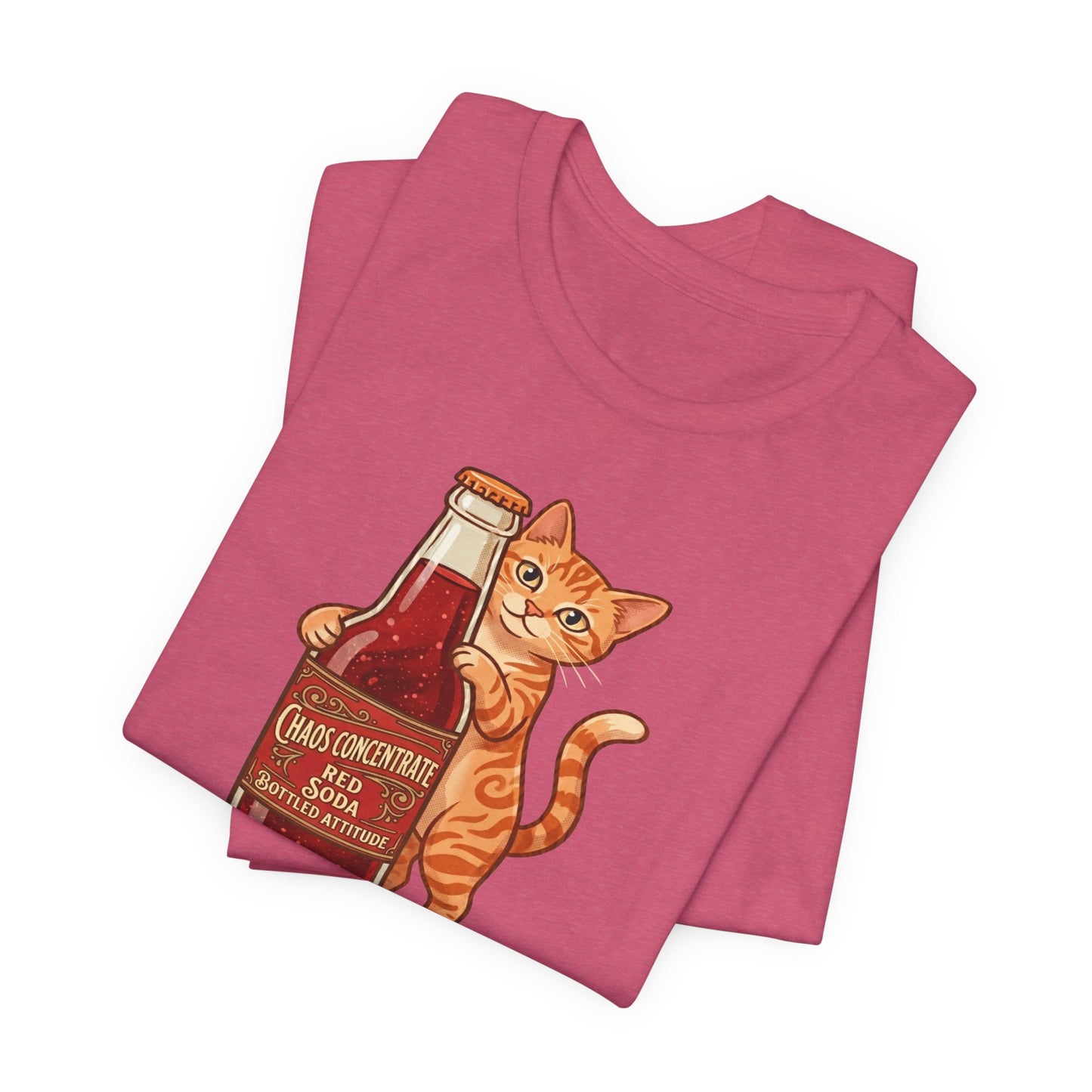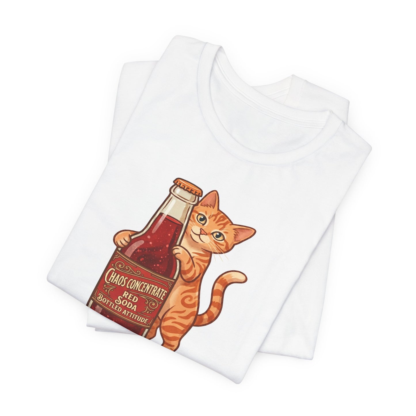 This isn't your average soda. Our "Chaos Concentrate" tee features a mischievous orange tabby hugging a classic glass bottle of Red Soda—the ultimate fuel for those who live life with a side of feline sass. With its 1950s-inspired lettering and mid-century illustration style, this shirt is a must-have for cat lovers, retro enthusiasts, and anyone who identifies with "Bottled Attitude."