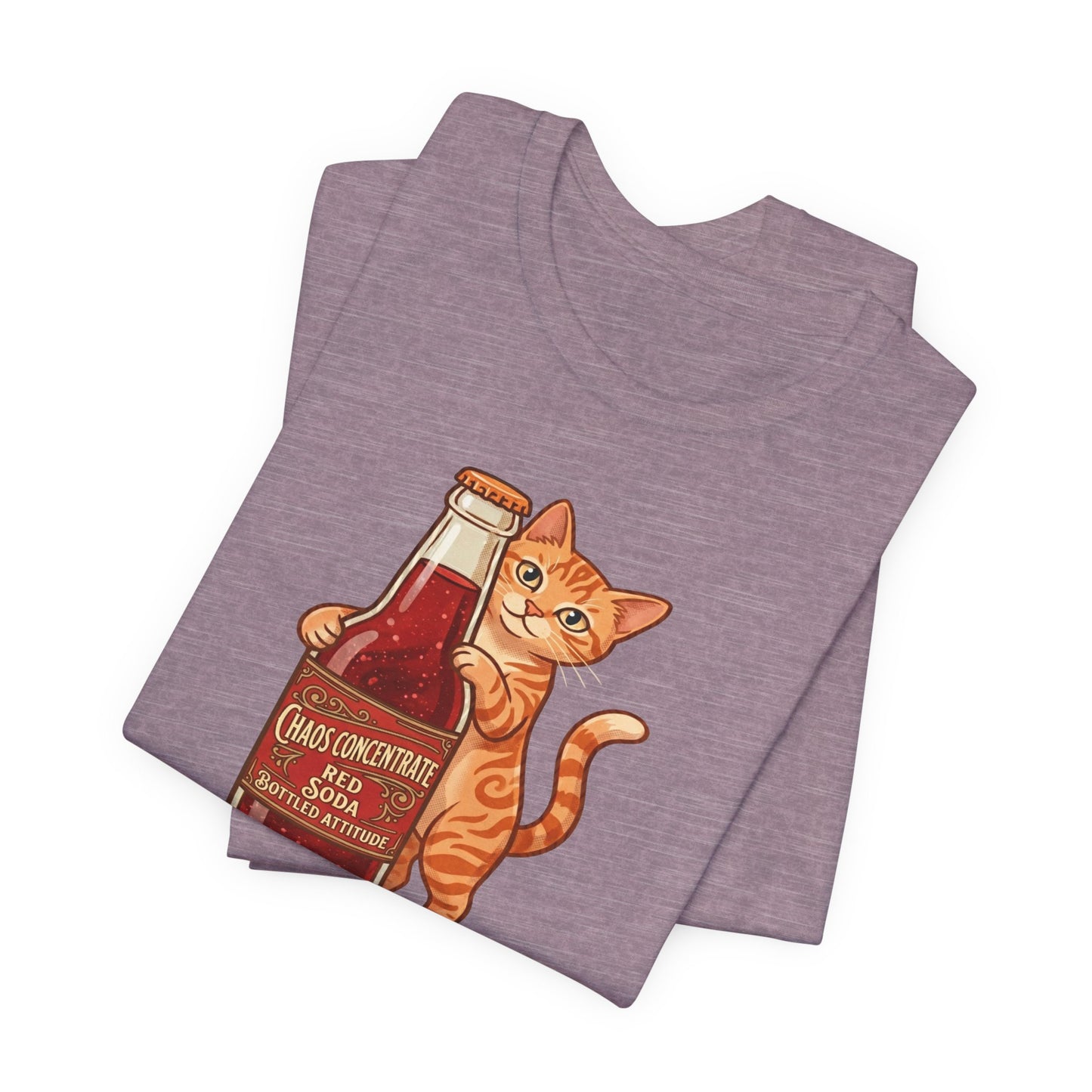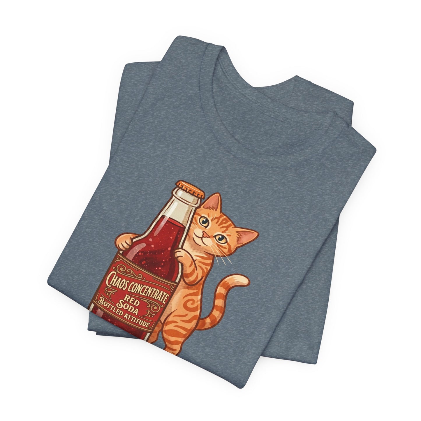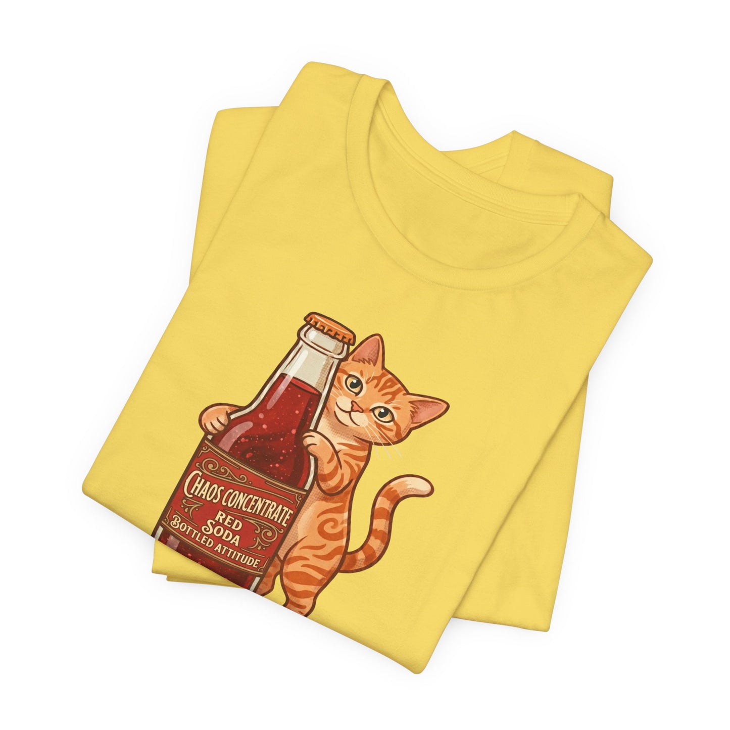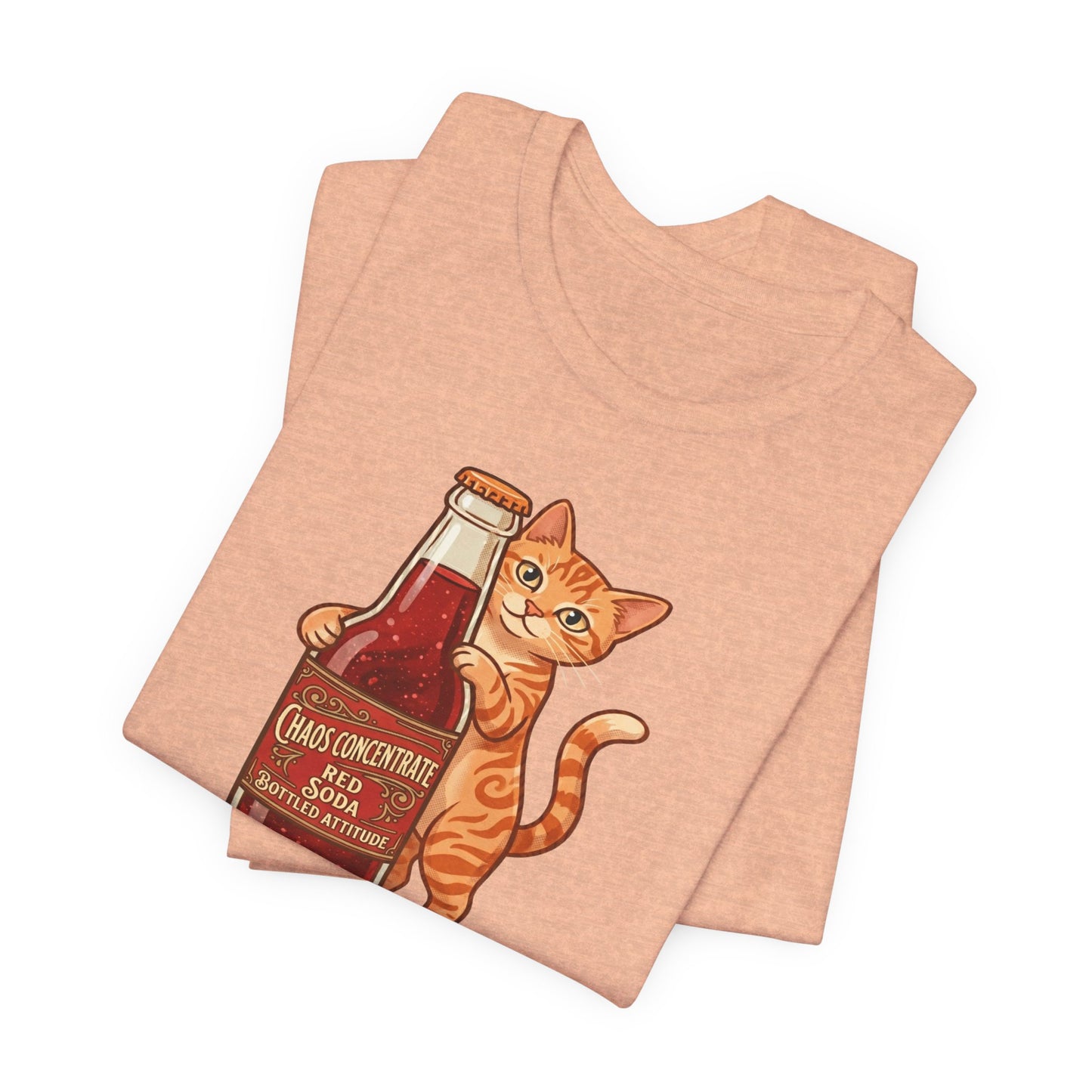 This isn't your average soda. Our "Chaos Concentrate" tee features a mischievous orange tabby hugging a classic glass bottle of Red Soda—the ultimate fuel for those who live life with a side of feline sass. With its 1950s-inspired lettering and mid-century illustration style, this shirt is a must-have for cat lovers, retro enthusiasts, and anyone who identifies with "Bottled Attitude."
