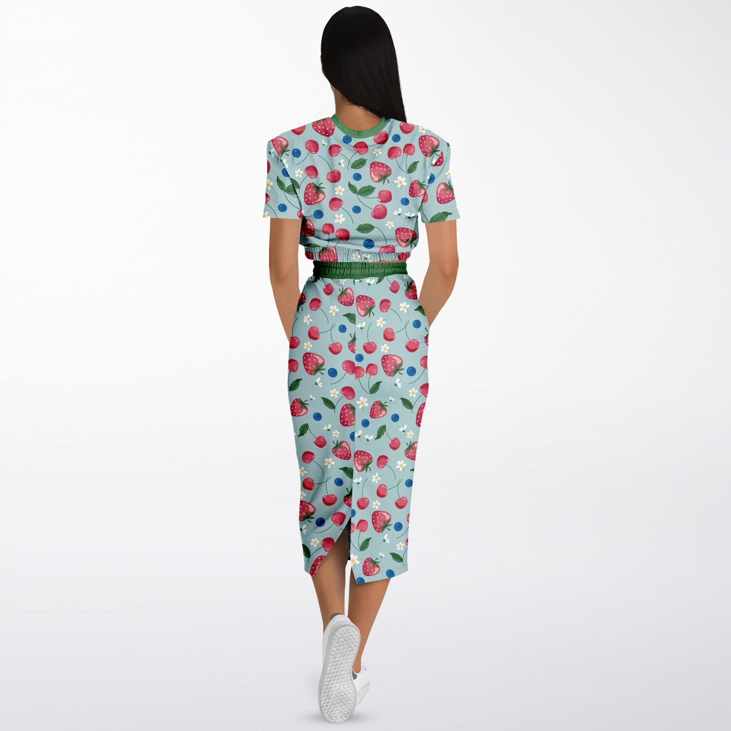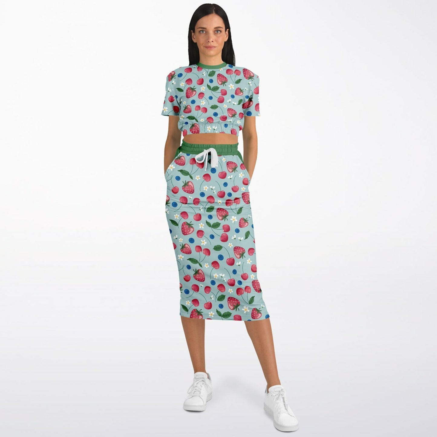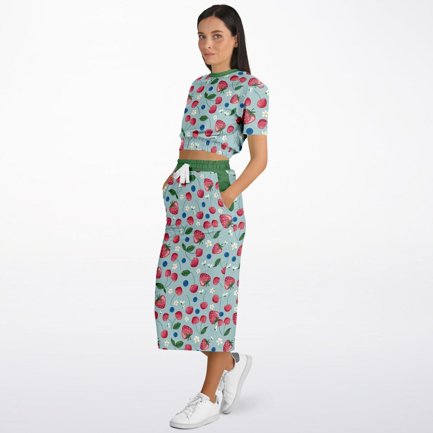 Berry Sweet Athletic Cropped Pullover and Long Skirt With Pockets